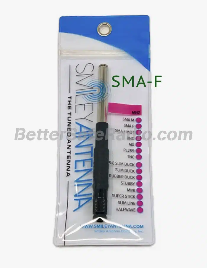 I got one of these Smiley antennas, initially for the KG-UV9G PRO I’m in line to get one day. I tried it on my Baofeng UV-9G (with a gender bender) and that IS one highly tuned antenna. SWR was 1.01. The factory antenna was 1.72! Going to try your replaceable end bits [Smiley TA Base Connector] to get a cleaner install but wanted you to know that your words ring clear as a bell, it is indeed “Highly Tuned.” Liked it so much I went and got two more!